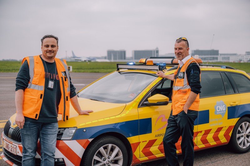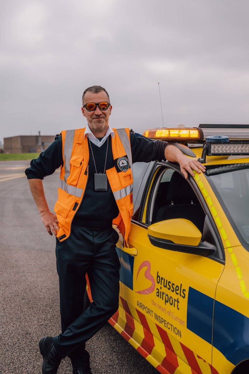 Een serieuze verantwoordelijkheid, waar een training uiteraard niet bij kan ontbreken. Gert: “De collega’s van Airside Inspection moeten regelmatig (refresh-)opleidingen volgen. Ook voor prioritair rijden hebben ze de nodige certificaten nodig, want in uitzonderlijke gevallen moeten ze zich buiten het beschermd luchthavengebied begeven – bijvoorbeeld om externe hulpdiensten te begeleiden. Maar ook op het privéterrein van Brussels Airport is het belangrijk om de kneepjes van het vak te kennen. De verkeersregels zijn daar immers nog steeds van kracht, met de extra moeilijkheid dat je soms tussen vliegtuigen, bagagekarretjes en passagiers moet navigeren. Al hebben we gelukkig wel het voordeel dat we daarbij kunnen communiceren met de luchtverkeersleiding.”