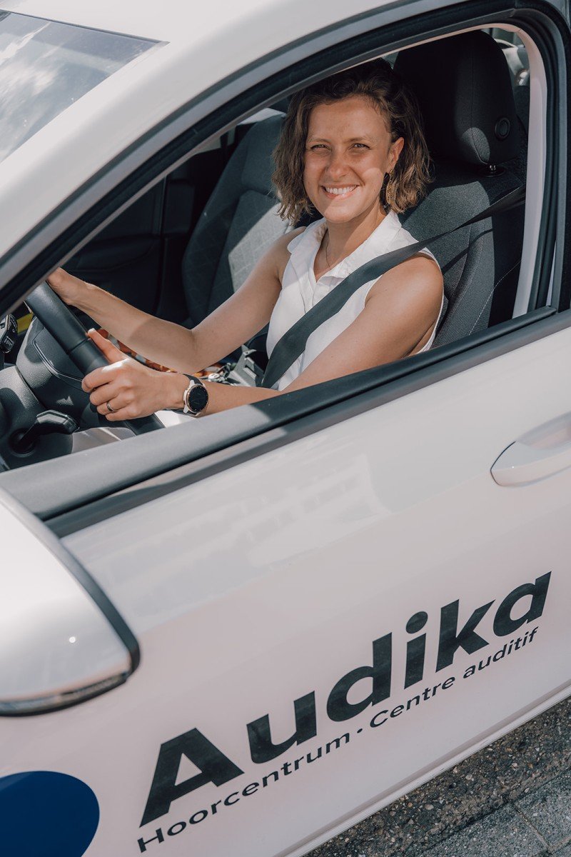 Maar wat als je slechter hoort? Heeft dat dan meteen een impact op je rijgedrag? Lieselot: “Ons cliënteel valt onder de slechter horende doelgroep. En wat merken we? Dat mensen hun gehoorverlies zelf meestal niet zo snel waarnemen. Je ziet vaak chauffeurs minutenlang rondrijden met hun richtingaanwijzer op. Dat komt doordat ze het geluid niet meer horen. Het is pas als je hen erop wijst dat ze dat probleem zelf ook opmerken. Al die kleine dingen zorgen ervoor dat je minder gefocust bent en dat kan uiteindelijk een impact hebben op je rijgedrag. Of denk aan mensen met een asymmetrisch gehoorverlies die langs de ene kant wel nog horen en aan de andere niet. Daardoor misinterpreteren ze vaak waar een geluid vandaan komt. En om maar te zwijgen van hoeveel energie dat kost als mens. Allemaal factoren die een invloed kunnen hebben achter het stuur.”